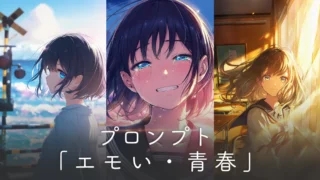 青春やエモい雰囲気のAIイラストを作るためのプロンプト集。逆光・ハレーションなどの光表現、色収差やノイズによる崩し、季節感のある背景、青春らしい仕草・ポーズまで整理して解説。エモいイラストを再現したい人向け。