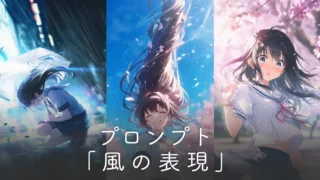 AIイラストで風の表現を再現する方法を、プロンプトの組み合わせごとに整理。全体の風の雰囲気、髪や服のなびき、服のめくれ(風チラ)、浮遊物や構図による表現まで具体的に解説し、風の強さや方向をコントロールするための基本的な作り方をまとめています。