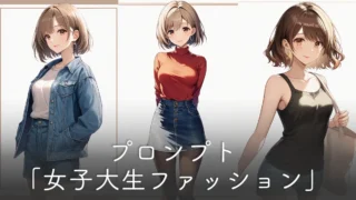AIイラストで女子大生ファッションを再現するためのプロンプトとコーデの組み立て方を解説。服装の基本パターン、髪型・外見の調整方法、トップス・ボトムス・小物などアイテム別プロンプトを整理し、女子大生らしいコーデを作るための具体的な手順をまとめています。