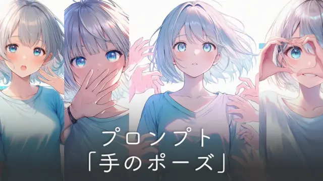 動作・ポーズのプロンプト 手のポーズ・状態を指定するAIプロンプト84種まとめ 手のポーズや仕草を表現するAIイラスト用プロンプトを84種類にわたって分類・整理。指の形、顔まわりへの接触、物を持つ動作など、再現性の高い手の表現を一覧で確認できます。手の破綻を防ぎたい方や構図に動きを加えたい方に最適です。 2025.12.01 動作・ポーズのプロンプト