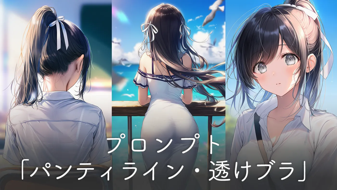 そのうえで、「facing away, back, butt(後ろ姿、背中、お尻)」というように、体の後ろのプロンプトの記述量を増やして、安定を狙っています。