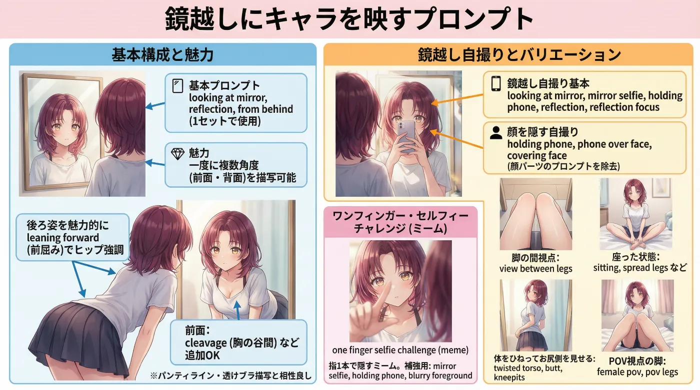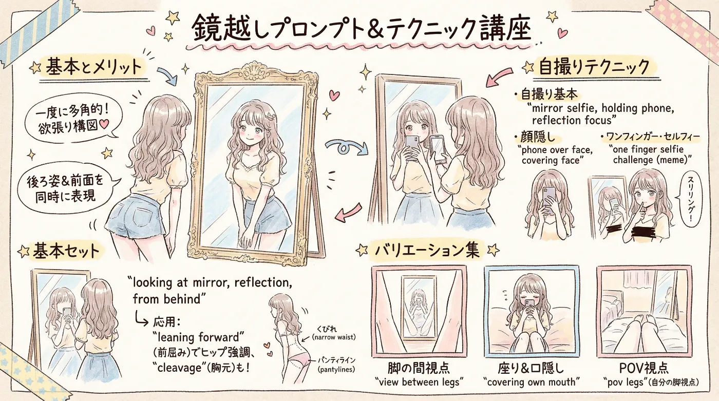 鏡越し構図のバリエーション別プロンプト集
