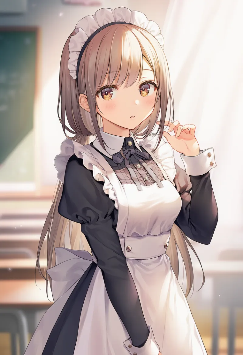 概要:文化祭当日、メイド喫茶ブースで働く美少女のひととき。大胆なコマ割りにしてください。