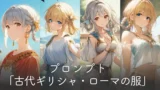 民族衣装は、シンプルに「ancient_greek_clothes(古代ギリシャの民族衣装)」のようなプロンプトを指定するだけで、服を再現できるところが大きなメリットです。