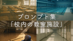 教室などの学校内の施設や部屋については以下記事にてプロンプトを紹介しています。
