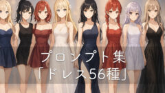 なおブラ・ショーツ・各種ランジェリーなど下着のプロンプトは以下でイラスト付きで紹介しています。