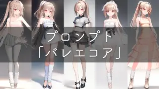 韓国発のファッションスタイル「バレエコア」を再現したプロンプトを以下の記事にて紹介しています。ガーリー系に儚さを足したようなスタイルです。